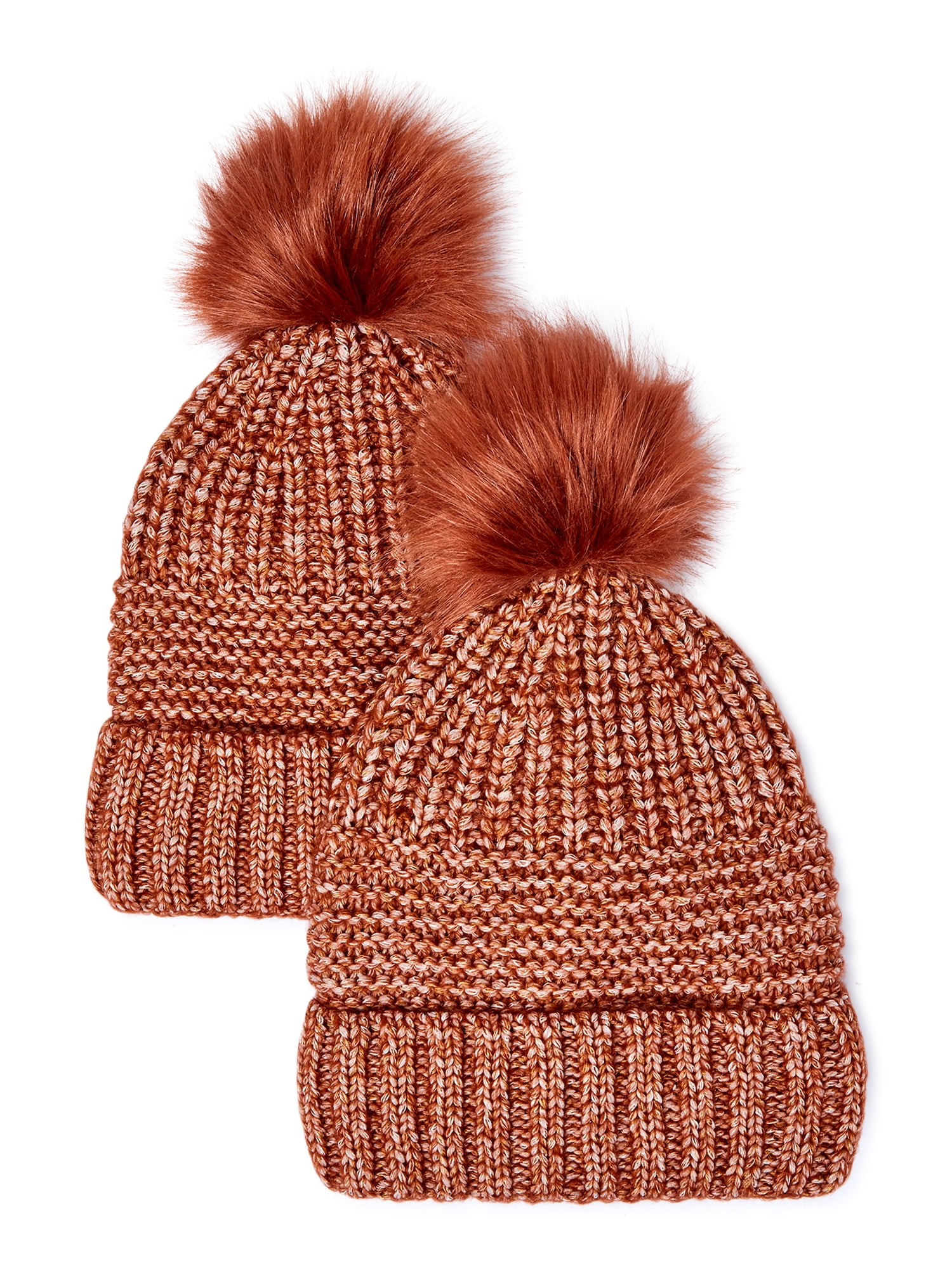 Time And Tru Women S Knit Hat With Pom Pom 2 Pack Walmart Com