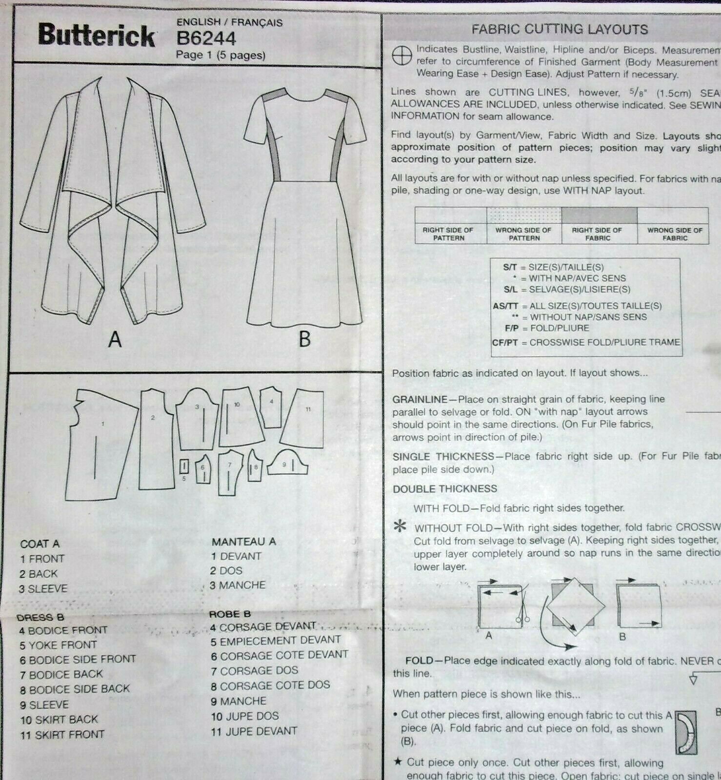 B6244 Misses Women S Draped Collar Coat And Dress Butterick Patterns